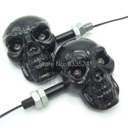 HOT OFFERS 2x Black Universal Motorcycle Skull 4 LED Turn Signal