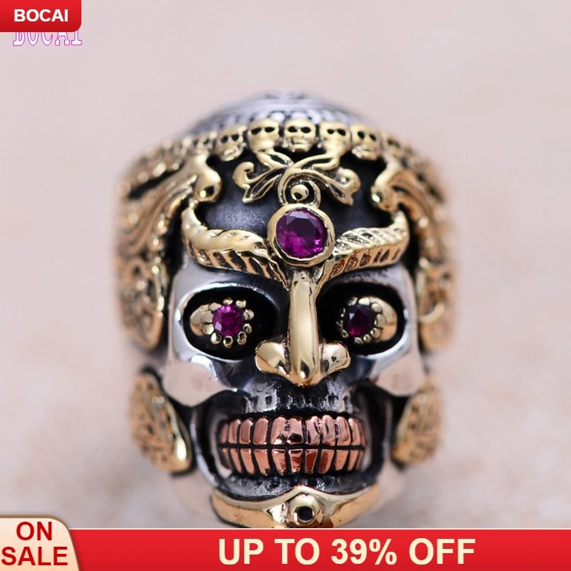 Dear definitely the 925 pure silver jewelry fashion majestic Shantou King inlaid red corundum male ring RECOMMENDED TODAY
