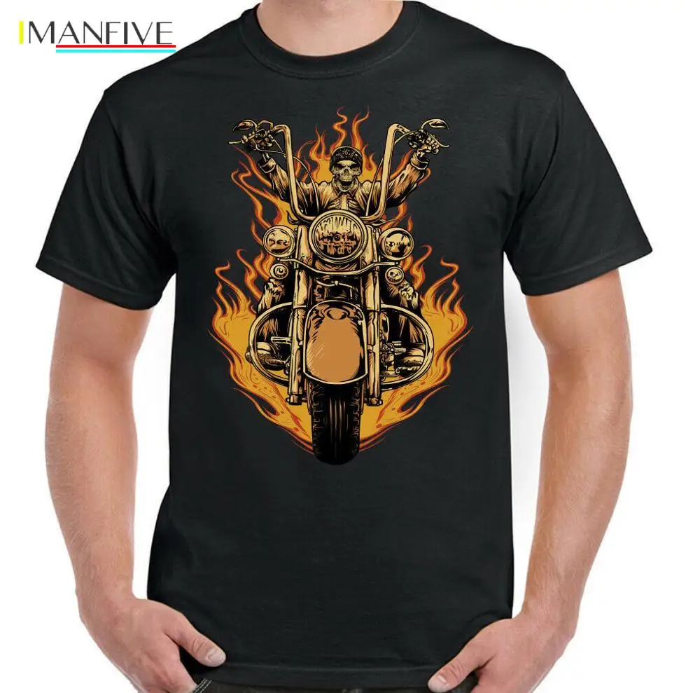 SPECIAL OFFERS Mens Biker Flames T Shirt Skull Skeleton Motorbike Motorcycle Bike Chopper Top T Shirt for Male Short Sleeves Classic T Shirt one of the best