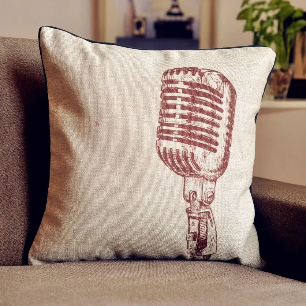 buy Vintage Retro Microphone Cushion Cover Linen Pillow For Car Office