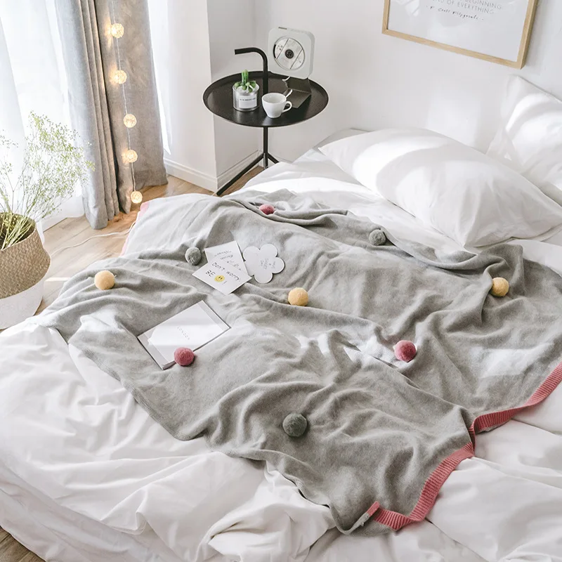 Bed Sofa Cover Knit Ball Plaids Koc Narzuta Home Textile DropShipping