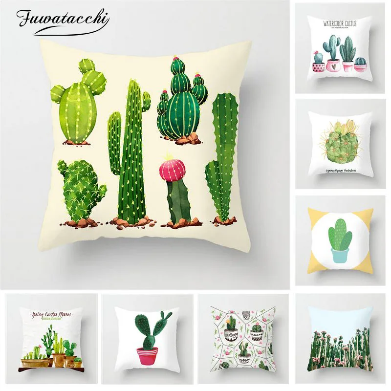 Dear my personal favorite Fuwatacchi Tropical Plant Cushion Cover Cactus Green and White Printed Pillow Cover For Home Chair Sofa Decorative Pillowcases RECOMMENDED TODAY