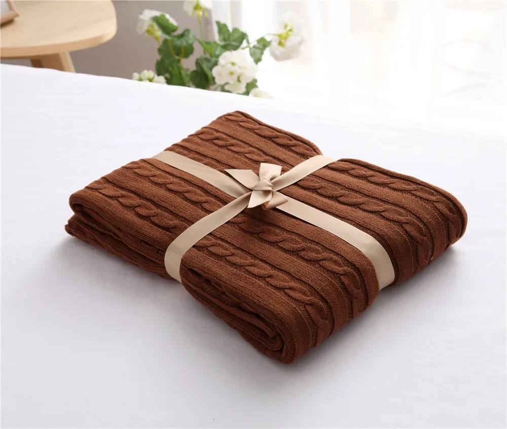 Brown, Gray, Red, Green Knit Blanket For Sofa bed home Spring