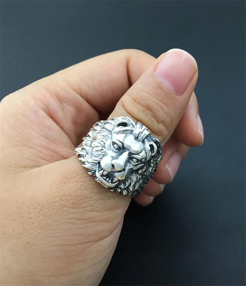 buy Solid Silver 925 Lion King Thick Band Rings Men 100% Mens Jewelry