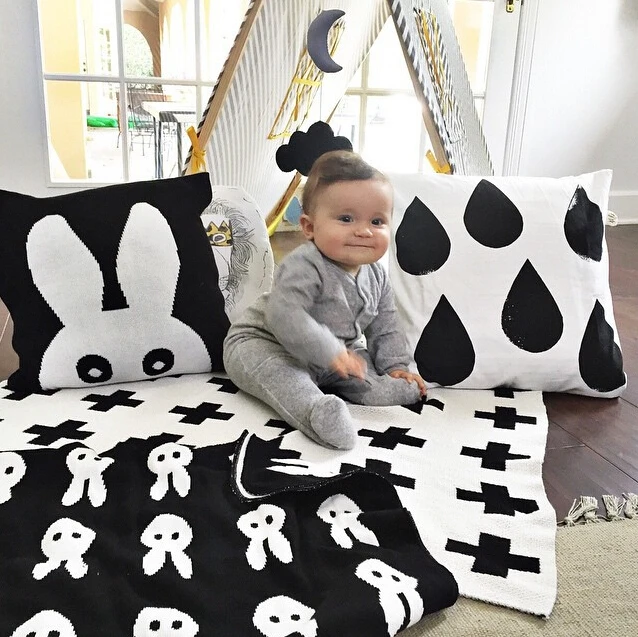 SPECIAL OFFERS Baby Blanket Black White Cute Rabbit Swan Cross Knitted Plaid For Bed Sofa Cobertores Mantas BedSpread Bath Towels Play Mat Gift one of the best