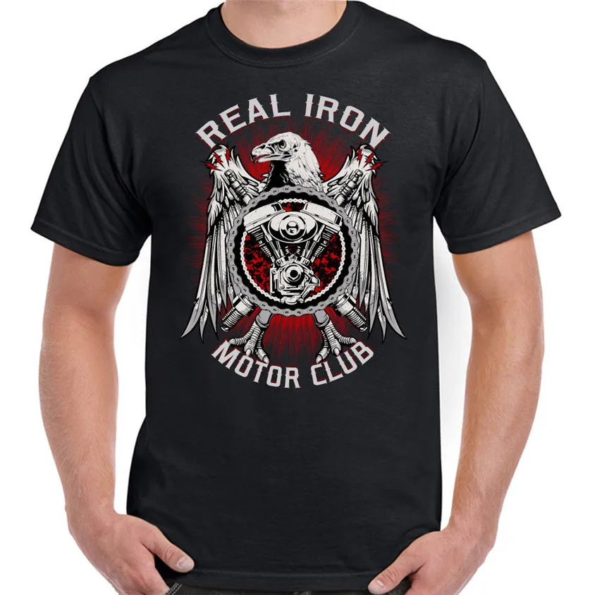 SPECIAL OFFERS Real Iron Mens Biker T Shirt Motorbike Motorcycle Bike Chopper Indian Club Eagle Casual Tee Shirt Online