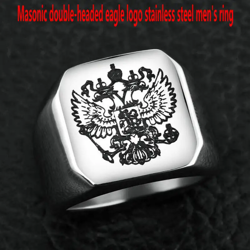 SPECIAL OFFERS Russian National Emblem Ring 3D engraving titanium steel ring Men #039;s Masonic Double Eagle Logo Stainless Steel Ring Online