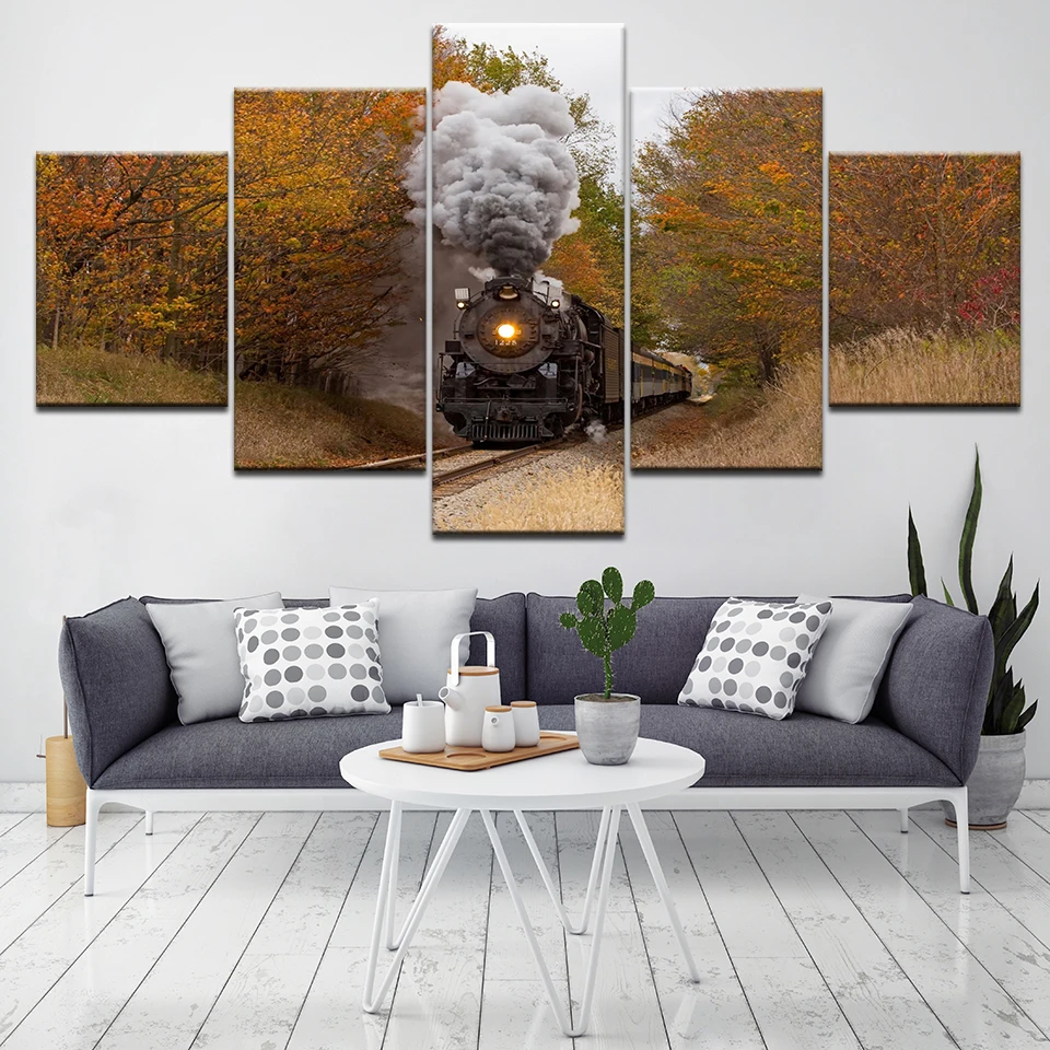 Dear definitely the 5 Panel Vintage Classic Steam Train Wall Art Home Bedroom Decoration Picture Painting Living room sofa background Posters Framed RECOMMENDED TODAY