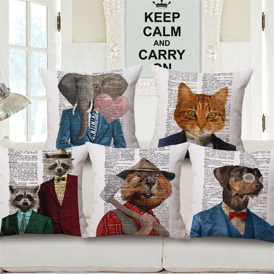 SPECIAL OFFERS Nordic Europe Retro Animal Portrait Sofa throw Pillow Case Car Vintage Home Decor Office Chair Cushion Cover Cotton Linen e1053 one of the best